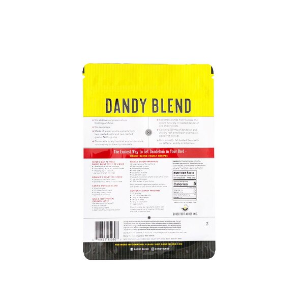 Dandy Blend instant dandelion beverage is the only herbal coffee substitute that offers the health benefits of dandelion and the rich, full bodied-flavour and smooth texture of real coffee. Macrobiotic, gluten-free and caffeine-free it is a great coffee alternative to add to your mornings.