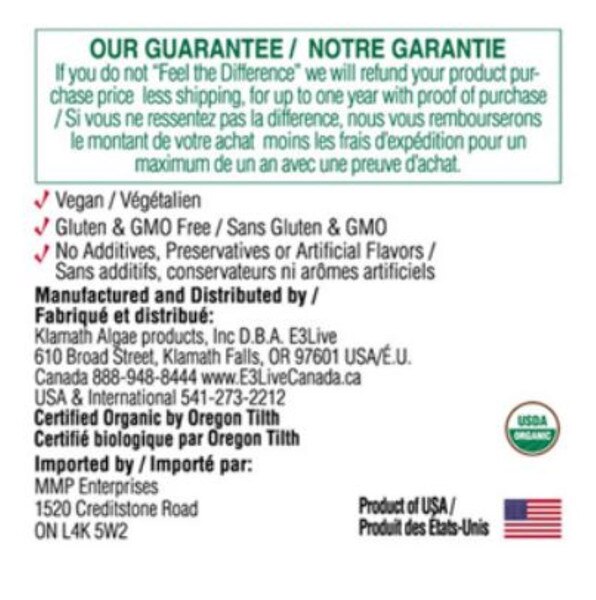 Klamath Algae Products Inc / dba E3Live 610 Broad Street Klamath Falls, OR 97601 USA
