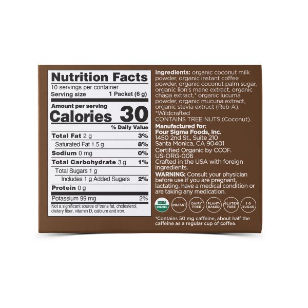 In between meals, reach for mushroom coffee latte with lion's mane & chaga. Sip the creamy coffee you love, with only 1 gram of sugar, and the benefits of lion's mane, chaga, lucuma powder, and mucuna. Sweetened with superfoods, enjoy a certified paleo, and dairy-free keto coffee that loves you a latte.
