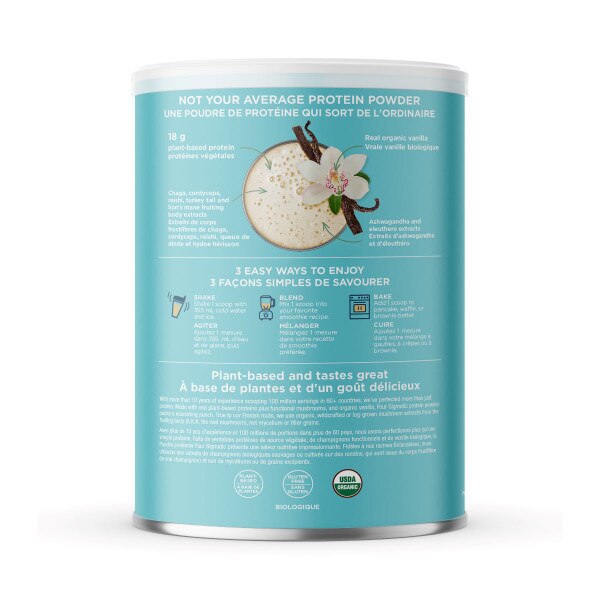 Four Sigmatic - Plant-Based ORGANIC PROTEIN POWDER with Mushrooms - Sweet VANILLA - (BIL) - 15 servings - 600g