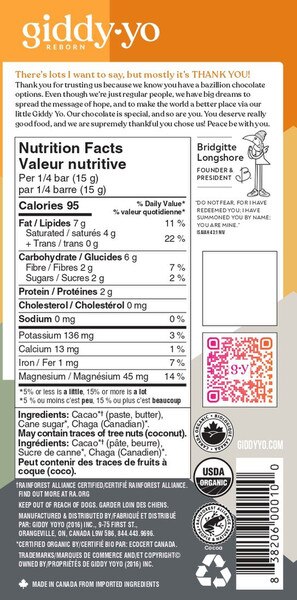 Cacao (Paste, Butter), Biodynamic Golden Cane, Canadian Chaga Powder.