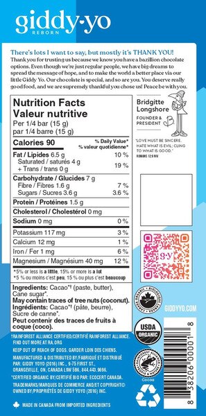 Giddy Yo - CRAFT DARK CHOCOLATE BARS - Original 76% - 60 g