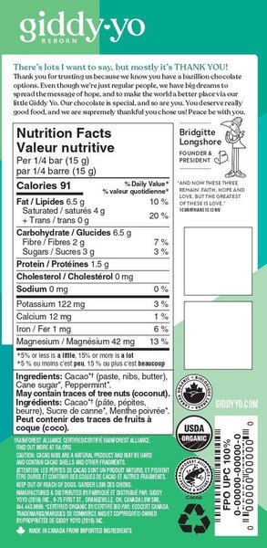 Cacao (Paste, Nibs, Butter), Cane Crystals, Mint Essential Oil