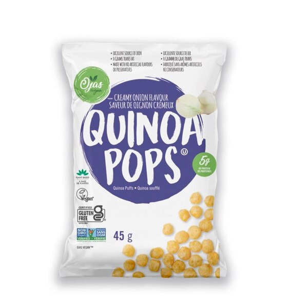 Light and crunchy, these quinoa pops are a unique feel-good plant-based product that are made with Non-GMO Project Verified ingredients. They certified vegan, gluten free and kosher. These delicious quinoa pops are an excellent source of iron, and packed with natural flavours. Enjoy this low calorie snack as a cereal, in smoothie bowls, or straight from the bag!