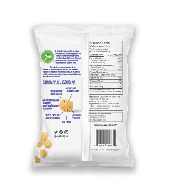 Ojas Vegan - Quinoa Pops - CREAMY ONION - 45 g