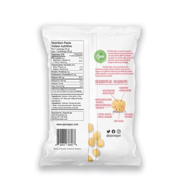 Ojas Vegan - Quinoa Pops - TOMATO & BASIL 45 g