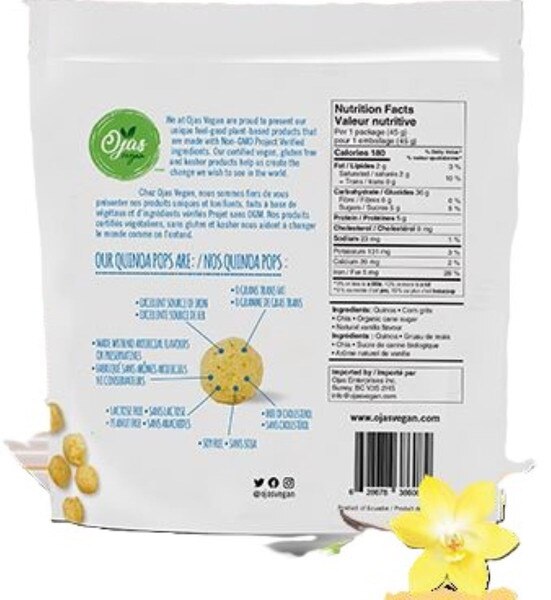 Ojas Vegan - Quinoa Pops - VANILLA 45 g