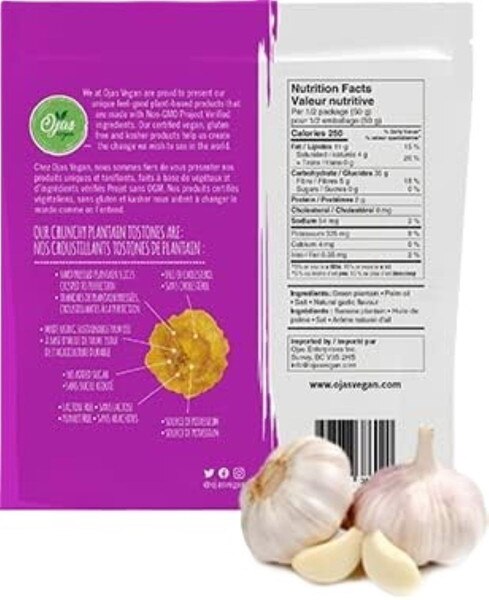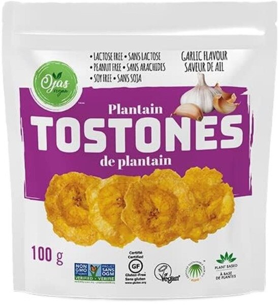 Crunchy and delicious, these ripe plantain tostones are a unique feel-good plant-based product that are made with Non-GMO Project Verified ingredients. They certified vegan, gluten free and kosher. These hard pressed plantains are crisped to perfection are packed with flavour but are cholesterol free and contain 0g of added sugar.